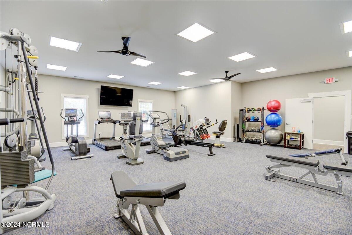 Constructed in 2024, the Fitness Center has treadmills, exercise bikes, elliptical trainers, free weights, and strength machines. The building is accessible 24/7 with a key fob issued by the Homeowners Association.