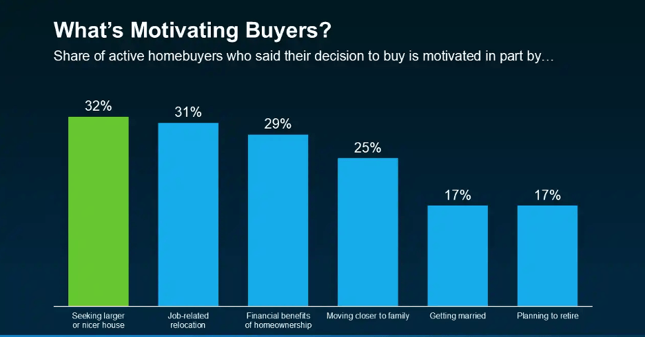 If you’ve been wanting to sell your house and move up to a bigger or nicer home, you’re not alone. A recent Inman survey reveals the top motivator for today’s homebuyers is the desire for more space or an upgraded home (see graph below):